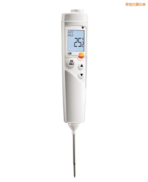 testo 106防水型食品中心溫度計(jì),溫度計(jì) 被測(cè)物,包括探頭保護(hù)帽和電池。