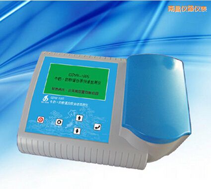 應(yīng)用領(lǐng)域 適用于牛奶、奶粉、牛初乳及牛初乳粉中蛋白質(zhì)的快速定量測定。 儀器特點(diǎn) ● 檢測速度:包括樣品前處理在內(nèi),,檢測每個樣品只需5~10分鐘。 ● 抗干擾能力:該儀器測定樣品中蛋白質(zhì)氮,,真實反應(yīng)樣品中蛋白質(zhì)的含量,,不受三聚氰胺、尿素、硝酸銨及甘氨酸等非蛋白氮的干擾。 ● 操作方式:被測樣品采用流通引入方式,,取代傳統(tǒng)的樣品池,,方便用戶操作、清洗及維護(hù);克服了傳統(tǒng)凱氏定氮法樣品前處理系統(tǒng)繁瑣,,操作步驟繁雜等缺點(diǎn),,避免了傳統(tǒng)方法需向樣品中加入濃硫酸,,高溫消化等危險性步驟。 ● 數(shù)據(jù)存儲:數(shù)據(jù)存儲量大,,存儲容量大于2000條檢測數(shù)據(jù)。 ● 單機(jī)軟件:單機(jī)具有數(shù)據(jù)處理、結(jié)果統(tǒng)計等功能。 ● 數(shù)據(jù)接口:外設(shè)USB、RS232接口。 ● 耗材配件:提供完備的專用前處理設(shè)備和耗材,一站式服務(wù)。 技術(shù)指標(biāo) ● 光源: 超高亮發(fā)光二極管 ● 測定下限: 0.50%(牛奶) 5.00%(奶粉) ● 測定范圍: 0.50 %~4.00%(牛奶) 5.00%~40.00%(奶粉) 4.00%~10.00% (牛初乳) 40.00%~80.00%(牛初乳粉) ● 精 密 度: 2 % ● 電源: AC 220V±22V,,50Hz±1 Hz ● 尺寸:275x210x130 mm ● 重量:1.7 kg 儀器配置 * 樣品前處理設(shè)備1套 * 微機(jī)接口和數(shù)據(jù)處理軟件1套 * 外置打印機(jī) * 試劑1套(50次)